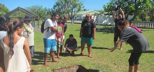 Rencontre avec Lawrence Timi Turi-Matautau, chef de groupe de chant Te pape ora no Papofai, John Mairai, chef du groupe Nuna’a e Hau et Makau Foster et Kohai, de Tamariki Poerani. Texte : ASF