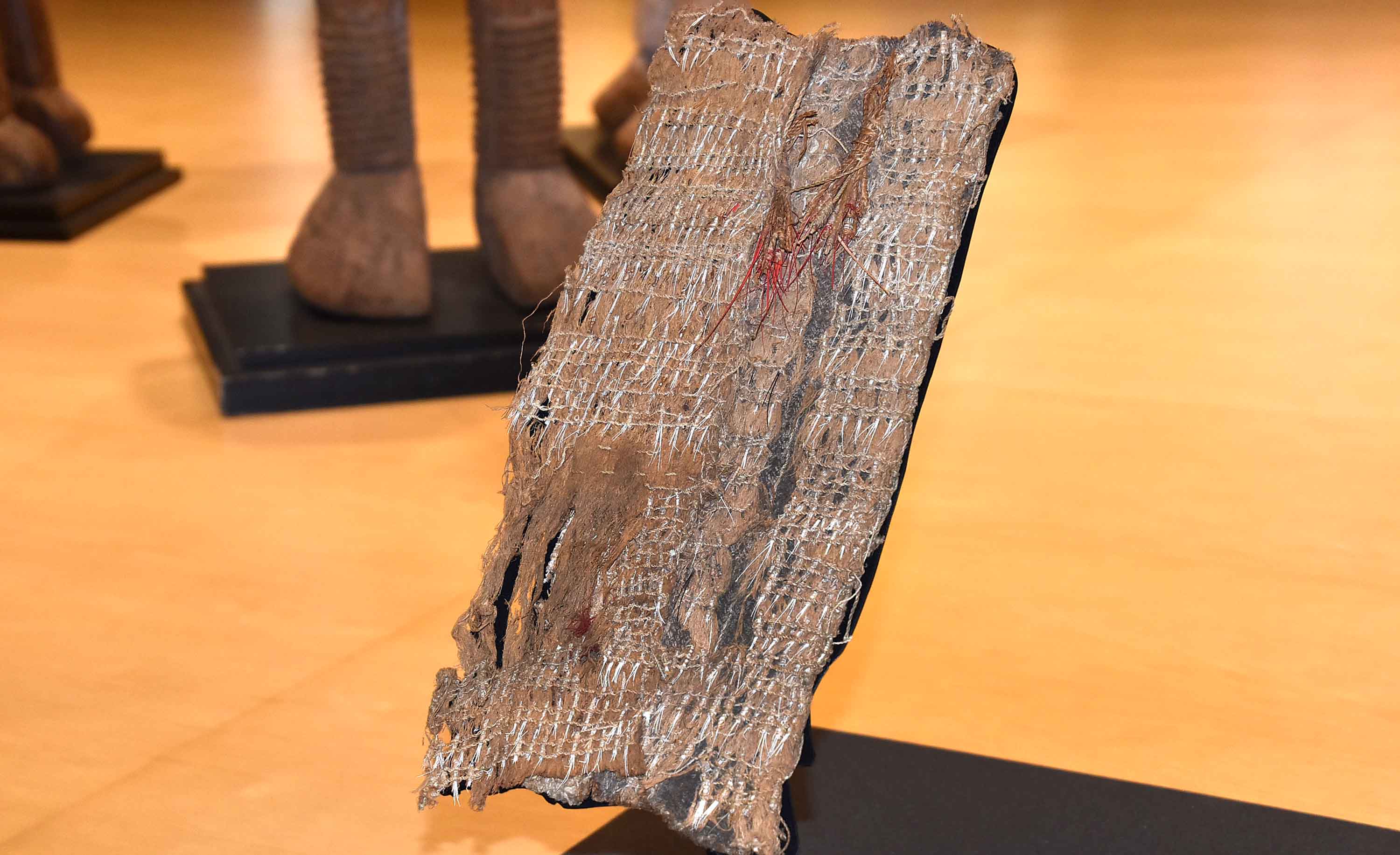 Cette pièce est un fragment d’une ceinture de chef qui faisait quatre mètres de long. Le maro ‘ura est un symbole très fort, car cette ceinture ne servait qu’à l’investiture d’un nouveau ari ‘i, puis elle était rangée. C’est un objet dont l’impact est fascinant, qui est resté dans les mémoires de Polynésiens alors qu’on ne l’avait plus vu depuis plus de cent ans.