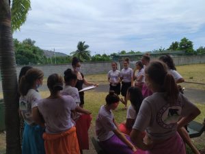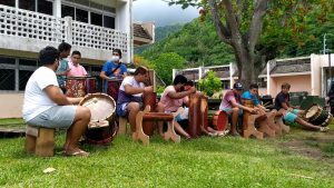 Pour Faaroa, on penche plutôt vers un isolement du groupe. « Le fait de venir d’une île nécessite une organisation et une logistique très particulières au sujet des déplacements des élèves et accompagnateurs, du transport de matériel, des instruments, costumes mais aussi la gestion de la situation sanitaire actuelle. Notre groupe vivra “dans sa bulle” et ne sortira de son lieu de résidence à Tahiti que pour se rendre aux répétitions et spectacle final avant de revenir sur Raiatea. Pour la remise des prix, il n’est prévu qu’une petite délégation. Les familles nous accompagnent dans ce projet et se sentent rassurées », explique Mahana Domingo-Mahai, professeure de Tahitien-Lettres et référente du Heiva Taure΄a pour son établissement.