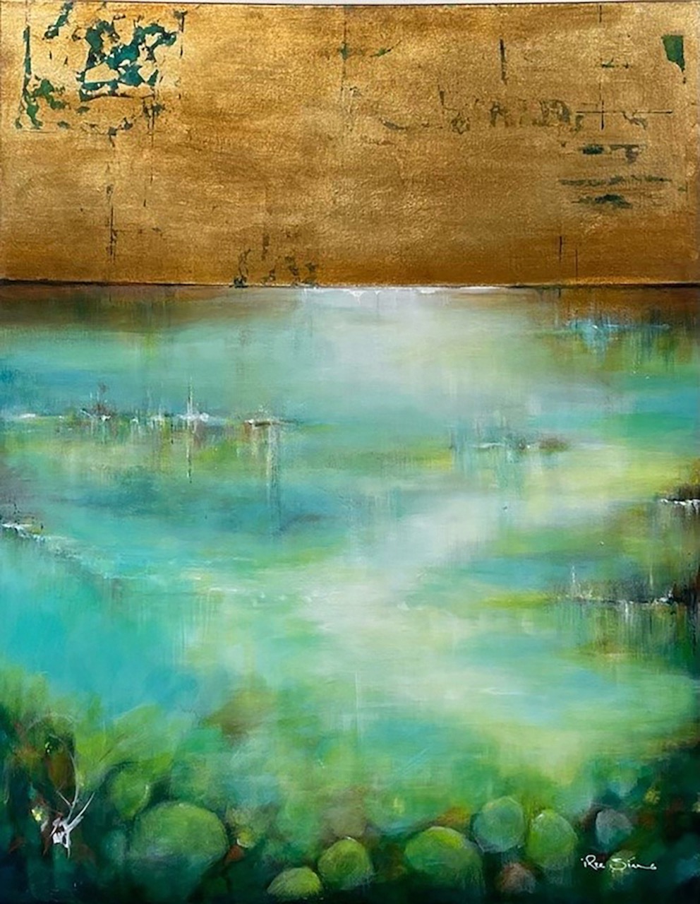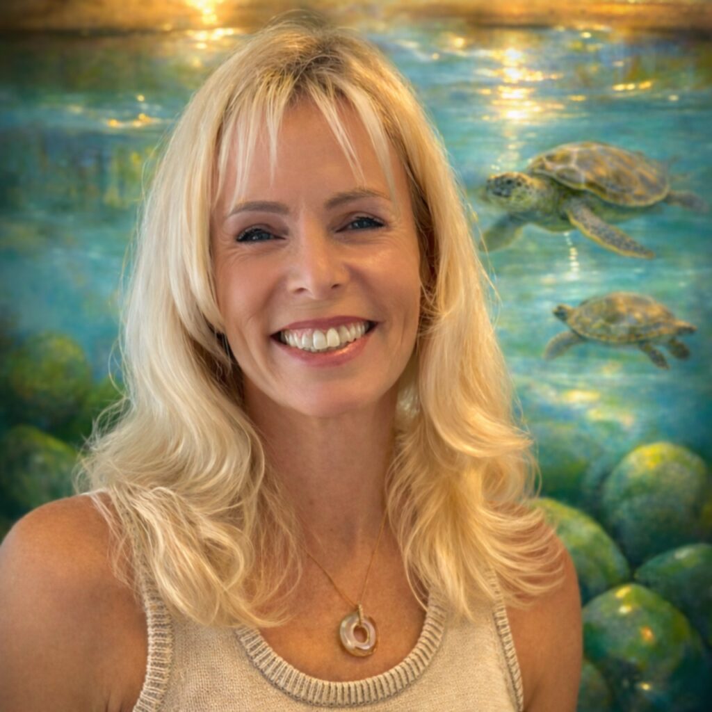 Ses œuvres texturées mêlent huile et acrylique, rehaussées de feuilles d’or, « qui symbolisent la lumière, à la fois réelle et intérieure, révélant ce qui a été transformé ou réparé ». Les surfaces de ses tableaux sont tactiles, parfois délicatement sculptées, parfois explorées de manière intuitive, tel « un processus vivant, en mouvement et, par moments, délicieusement libre ». Originaire d’Afrique du Sud, Ilze Sims a pris la mer à Cape Town à l’âge de 26 ans pour un périple de dix ans autour du monde. Guidée par l’eau et « un sentiment profond de liberté », elle découvre la Polynésie française en 1997. « Depuis, je suis revenue sept fois. Je suis appelée par le fenua », confie celle qui a tissé un lien durable avec ses paysages, sa culture… et sa lumière. Désormais installée à Hawaii, elle expose également à Laguna Beach, en Californie. Son événement à Tahiti est la continuité d’un parcours transpacifique.